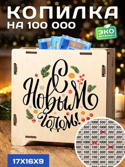 Копилка для денег новогодняя деревянная с цифрами 100 000 р