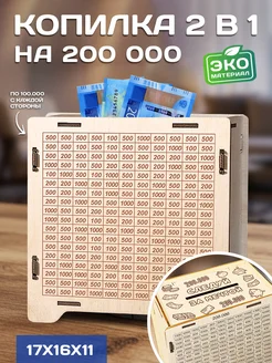 Копилка для денег деревянная с цифрами 200 000 р