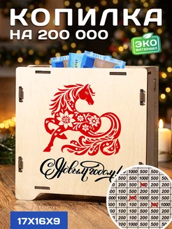 Копилка для денег новогодняя деревянная с цифрами 200 000 р