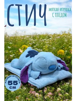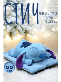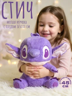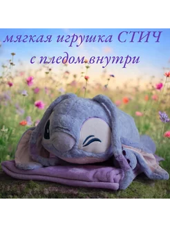 Мягкая игрушка Стич фиолетовый с пледом 3в1