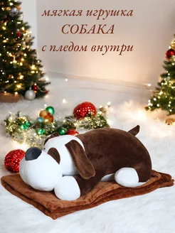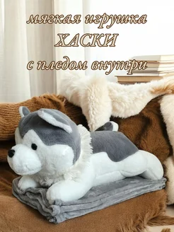 Мягкая игрушка Хаски с пледом 3в1 мех