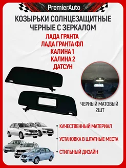 Козырьки солнцезащитные черные с зеркалом Гранта, Калина