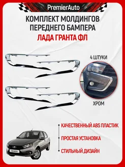 Молдинги иксы накладки переднего бампера Гранта ФЛ хром
