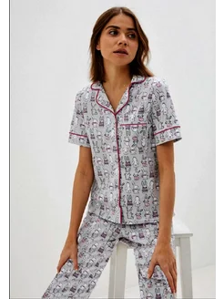 Пижама со штанами и рубашкой с коротким рукавом в зайчики