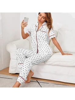 Пижама со штанами и рубашкой с коротким рукавом в сердечки