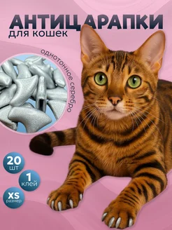 Когти накладные для кошек, антицарапки XS серебро