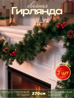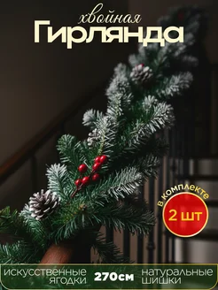 Хвойная гирлянда с ягодками и шишками 2 штуки по 2,7м+2,7м