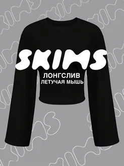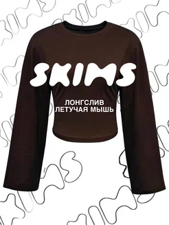Лонгслив приталенный с широкими рукавами летучая мышь