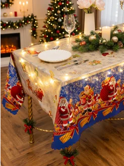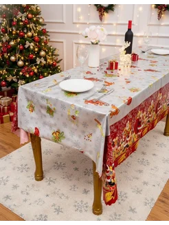 Скатерть новогодняя клеенка водоотталкивающая 220х140