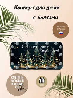 Подарочный конверт для денег деревянный купюрница Новый Год