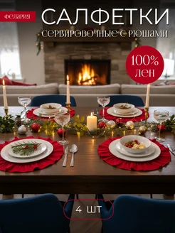 Салфетки на стол тканевые прямоугольные с рюшами, декоративн…