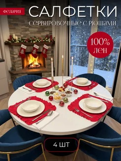 Салфетки на стол тканевые круглые с рюшами, плейсматы 4 шт