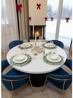 Салфетки на стол тканевые круглые с рюшами, плейсматы 2 шт