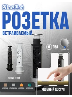 Розетка с люком встраиваемая выдвижная в столешницу