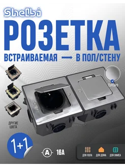 Влагостойкая розетка с люком встраиваемая в пол и стену 2шт