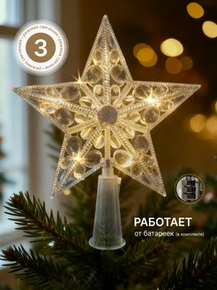 Звезда на елку верхушка наконечник на макушку светодиодная