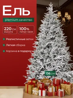 Елка искусственная новогодняя, литая 220 см, заснеженная