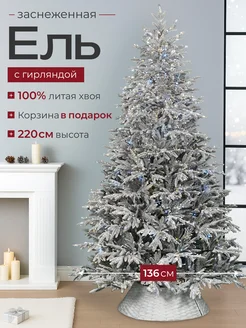 Елка новогодняя литая 220 см заснеженная с гирляндой