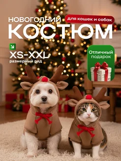 Новогодний костюм худи комбинезон олень для собак и кошек