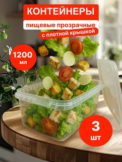Контейнер пищевой прозрачный с крышкой 1200 мл 3 штуки