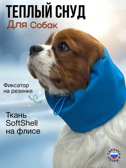 Теплый снуд шапка на флисе для всех пород собак голубой