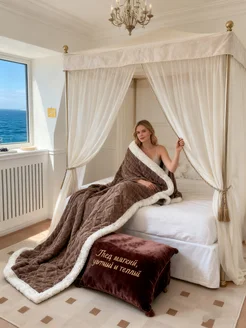 Плед 200x230 с текстурным плетением пуховой изнанкой