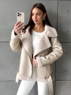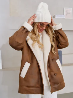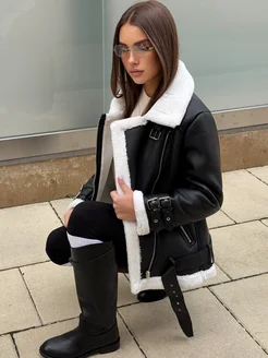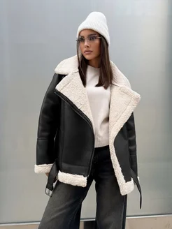 Дубленка авиатор короткая оверсайз зимняя пилот