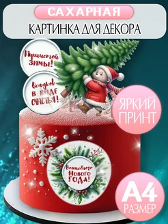 Украшения для торта Сахарная картинка Новый год