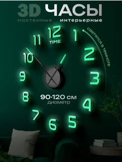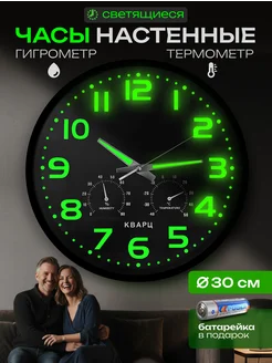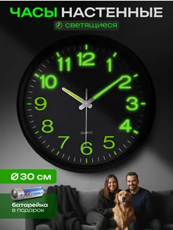 Настенные часы бесшумные светящиеся в темноте 30 см