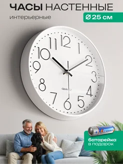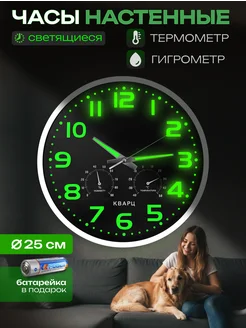Настенные часы бесшумные светящиеся в темноте 25 см
