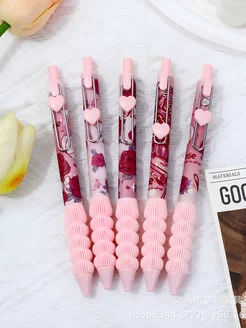 Милые черные гелевые ручки быстросохнущие, розы и сердечки