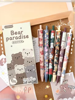 Милые эстетичные ручки черные гелевые мишки 6 шт