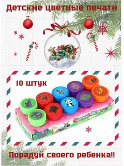 Набор детских цветных печатей Зоопарк штампики 10 шт