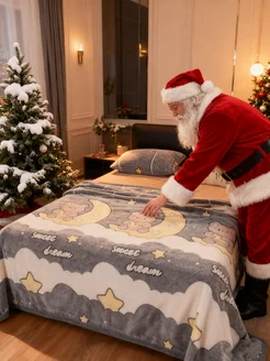 Плед новогодний 180х200 см уютный для дивана и кровати