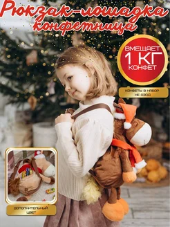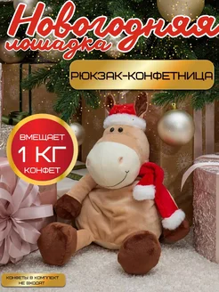 Мягкая игрушка Новогодняя Лошадка конфетница-рюкзак