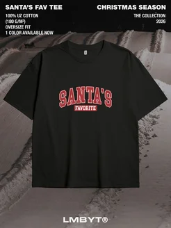 Новогодняя оверсайз футболка с принтом Santas favorite