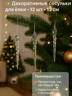 Набор прозрачных сосулек 13 см, новогодний декор для ёлки