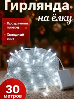 Гирлянда нить 30 метров холодный белый свет 5 режимов LED