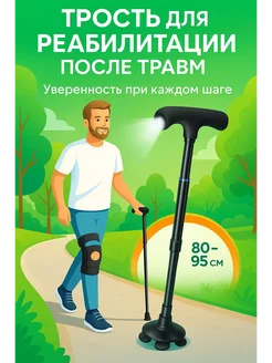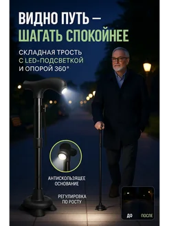 Трость складная с фонариком регулируемая для реабилитации, к…