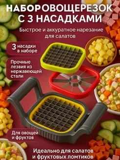 Овощерезка ручная кубиками для оливье с 3 насадками