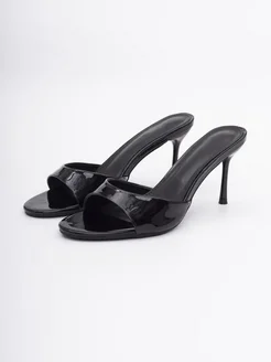 Босоножки мюли лаковые на каблуке черные