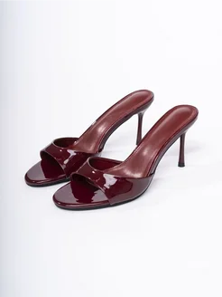 Мюли лаковые на каблуке с открытым носом