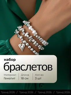 Браслет гематит на руку набор 3 шт с сердцем безразмерные
