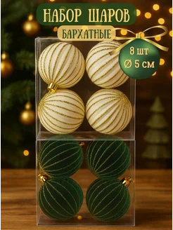 Елочные игрушки набор шаров бархатные 5 см, 8 шт