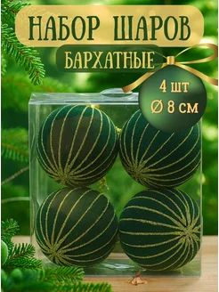 Новогодние бархатные шары на елку набор 8 см, 4 шт