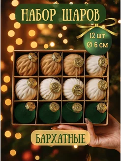 Елочные шары-игрушки новогодние бархатные набор 12 шт 6 см