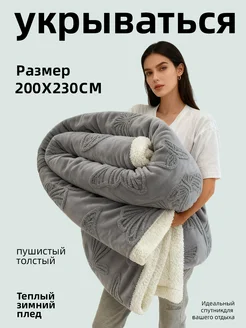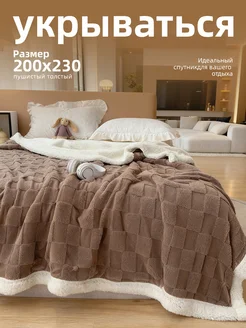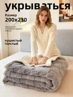 Теплый зимний плед 200х220 пушистый толстый укрываться
