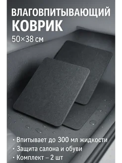Влаговпитывающие коврики для авто 50×38 см, комплект 2 шт