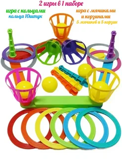 Игра Кольцеброс 10колец+ Боулинг кегли 20см 6штук шар 9см