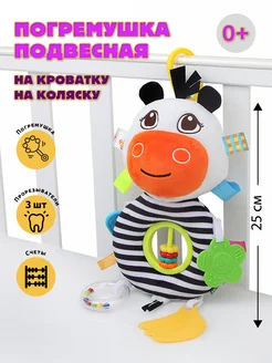 Развивающая игрушка подвесная мягкая прорезыватель Зебра-бык